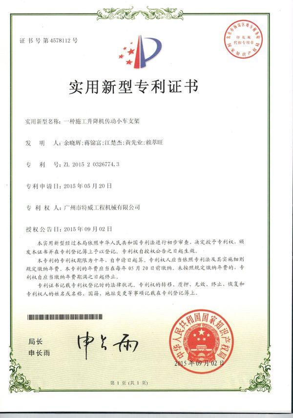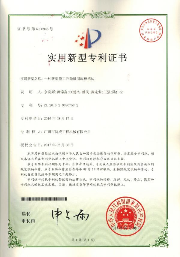 廣州市特威工程機(jī)械有限公司地處廣州市白云區(qū)神山鎮(zhèn),廣清高速神山出口附近,是一家施工升降機(jī)的專業(yè)生產(chǎn)廠家。公司成立于2011年,占地100000多平方米,注冊資金1060萬元,現(xiàn)有員工300余人其中工程技術(shù)人員33人,高級技術(shù)人員52人。
